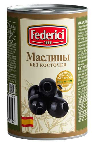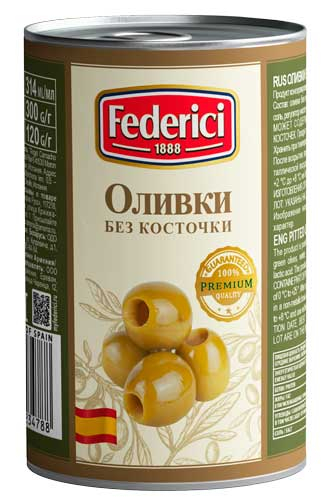 Оливки FEDERICI без косточки /жесть/ 300г*12