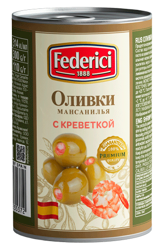 Оливки FEDERICI с креветкой /жесть/ 300г*12