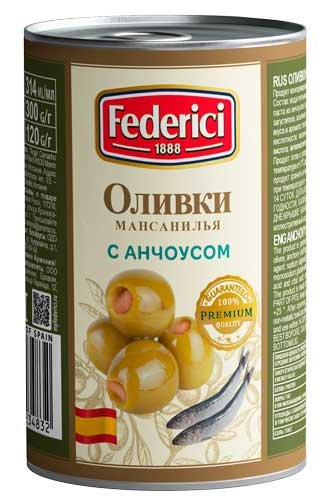 Оливки FEDERICI с анчоусом /жесть/ 300г*12