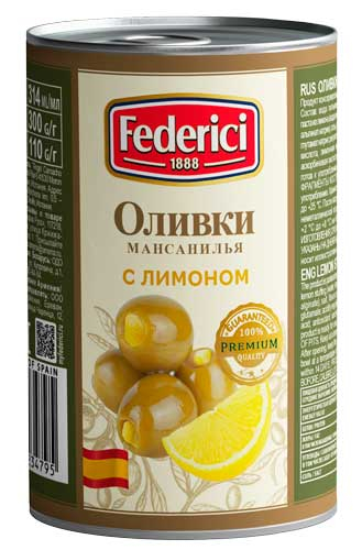 Оливки FEDERICI с лимоном /жесть/ 300г*12