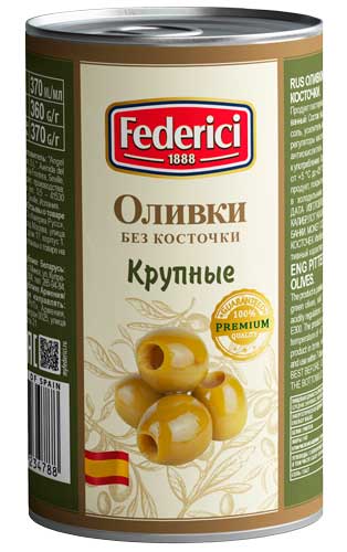 Оливки FEDERICI крупные без косточки /жесть/ 350г*12