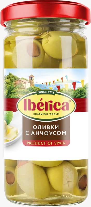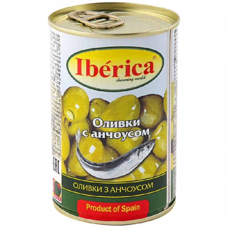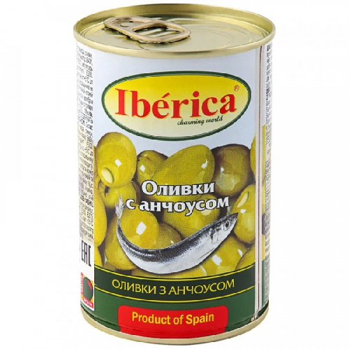 Оливки IBERICA с анчоусом /жесть/ 300г*12