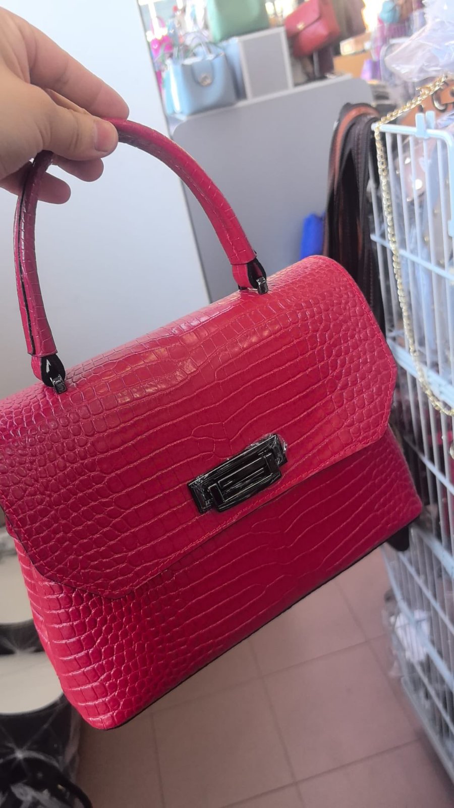 Сумка женская натуральная кожа ИТАЛИЯ арт 177, фуксия крокодил