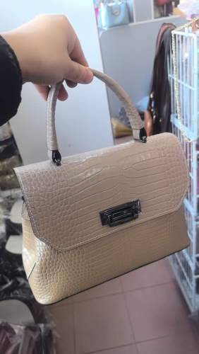Сумка женская натуральная кожа ИТАЛИЯ арт 177, слоновая кость крокодил