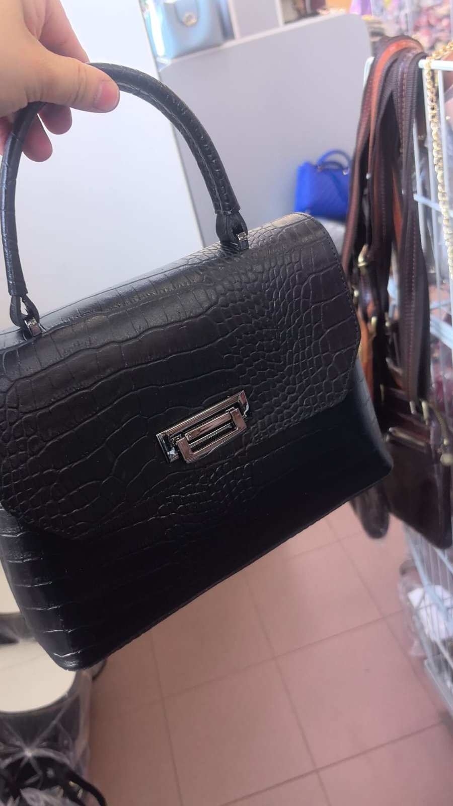 Сумка женская натуральная кожа ИТАЛИЯ арт 177, черный крокодил