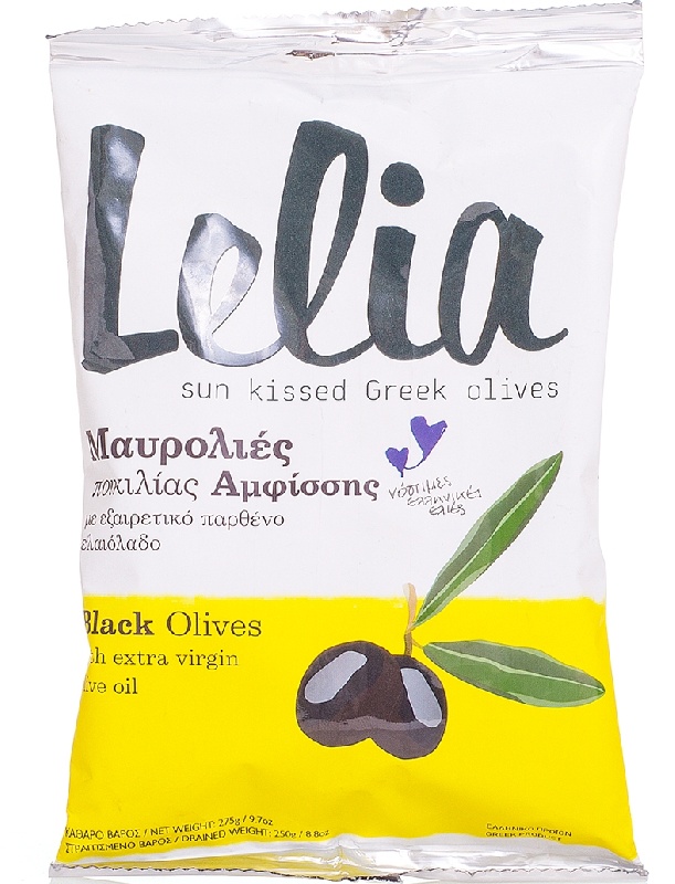 Оливки LELIA черные натуральные в оливковом масле /пакет/ 275г*12