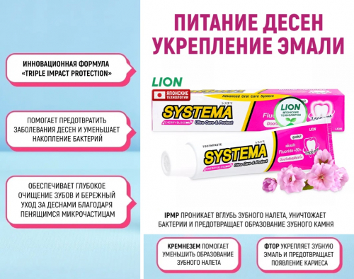 Зубная Паста Вишня в Цвету LION «Systema» 140 г