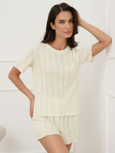 Ст.цена 1800р. Omsa Пижама OmD 0260D POINTELLE Пижама жен. (Футболка+Шорты с гульфиком), СО Avorio (Молочный) 566505