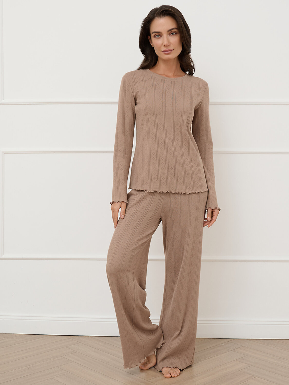 Ст.цена 2366р. Omsa Пижама OmD 0244D POINTELLE Пижама жен. (Лонгслив+Брюки широкие с гульфиком), СО Cappuccino (Коричневый) 566513