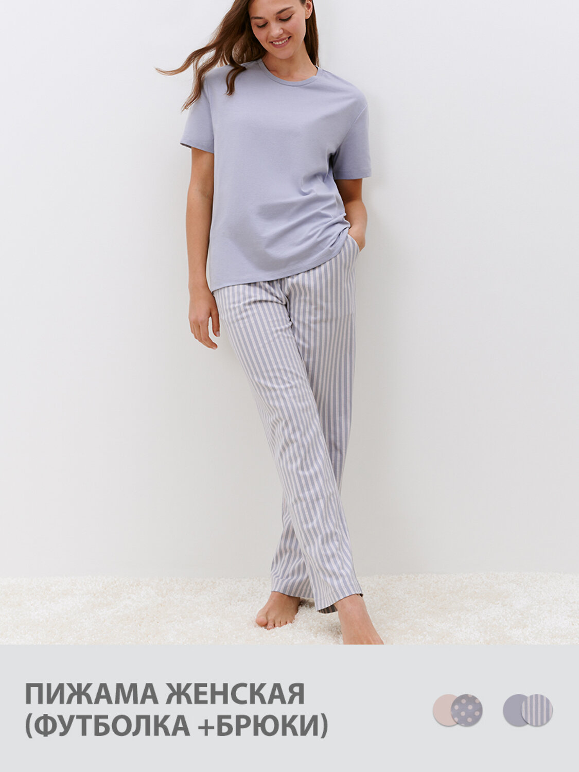 Ст.цена 2000р. Omsa Пижама OmD 0226D BELLA Пижама жен. (Футболка +Брюки прямые), СО Silver/Multicolour (Мультиколор) 541451