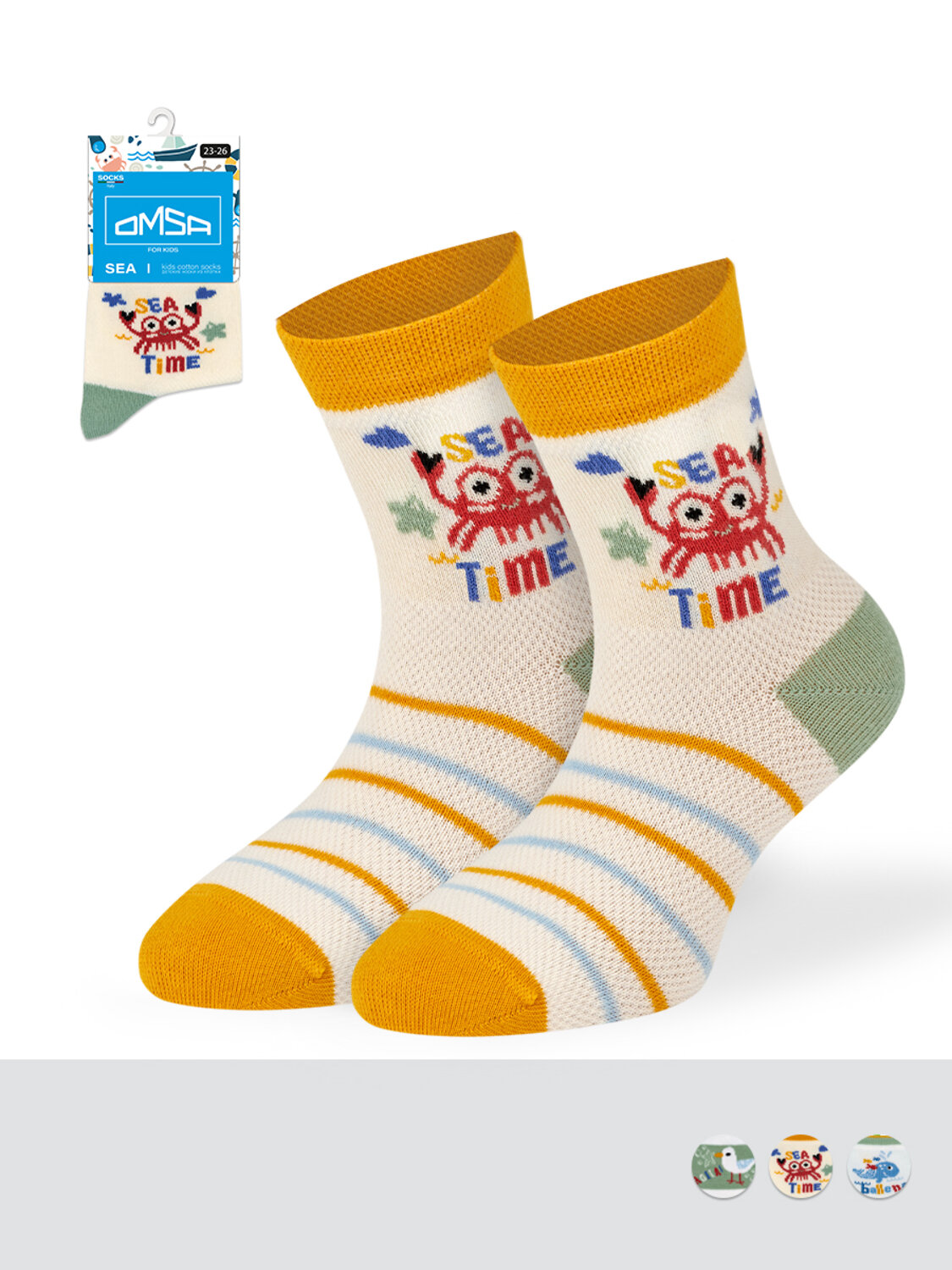 Ст.цена 66р. Omsa Носки OMSA kids Calzino 21P72 с ажурным переплетением сетка (Кит, Краб, Чайка) Avorio (Молочный) 476126