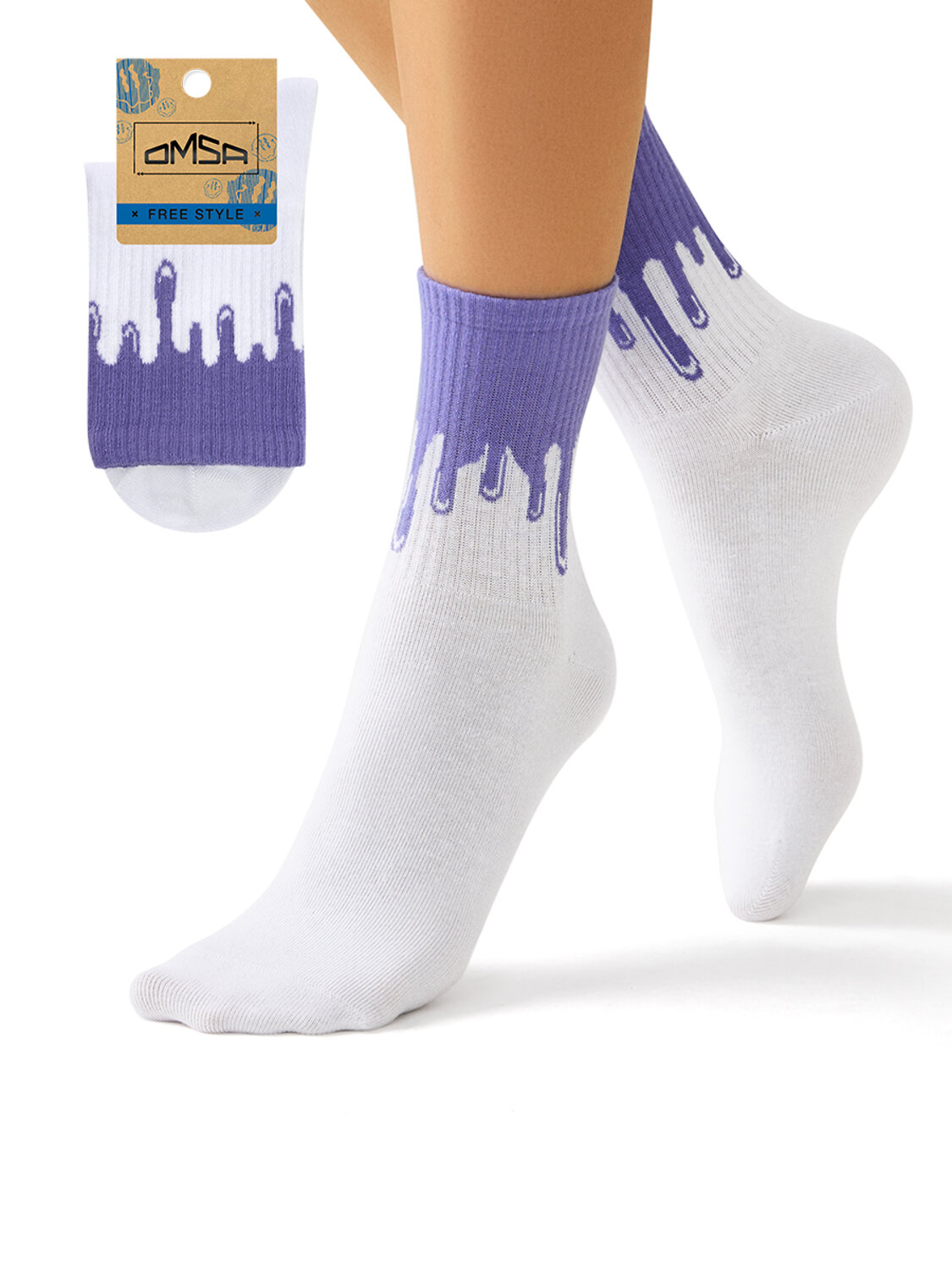 Ст.цена 90р. Omsa Носки OMSA FREESTYLE 606 Bianco/Lilla (Белый) 467026