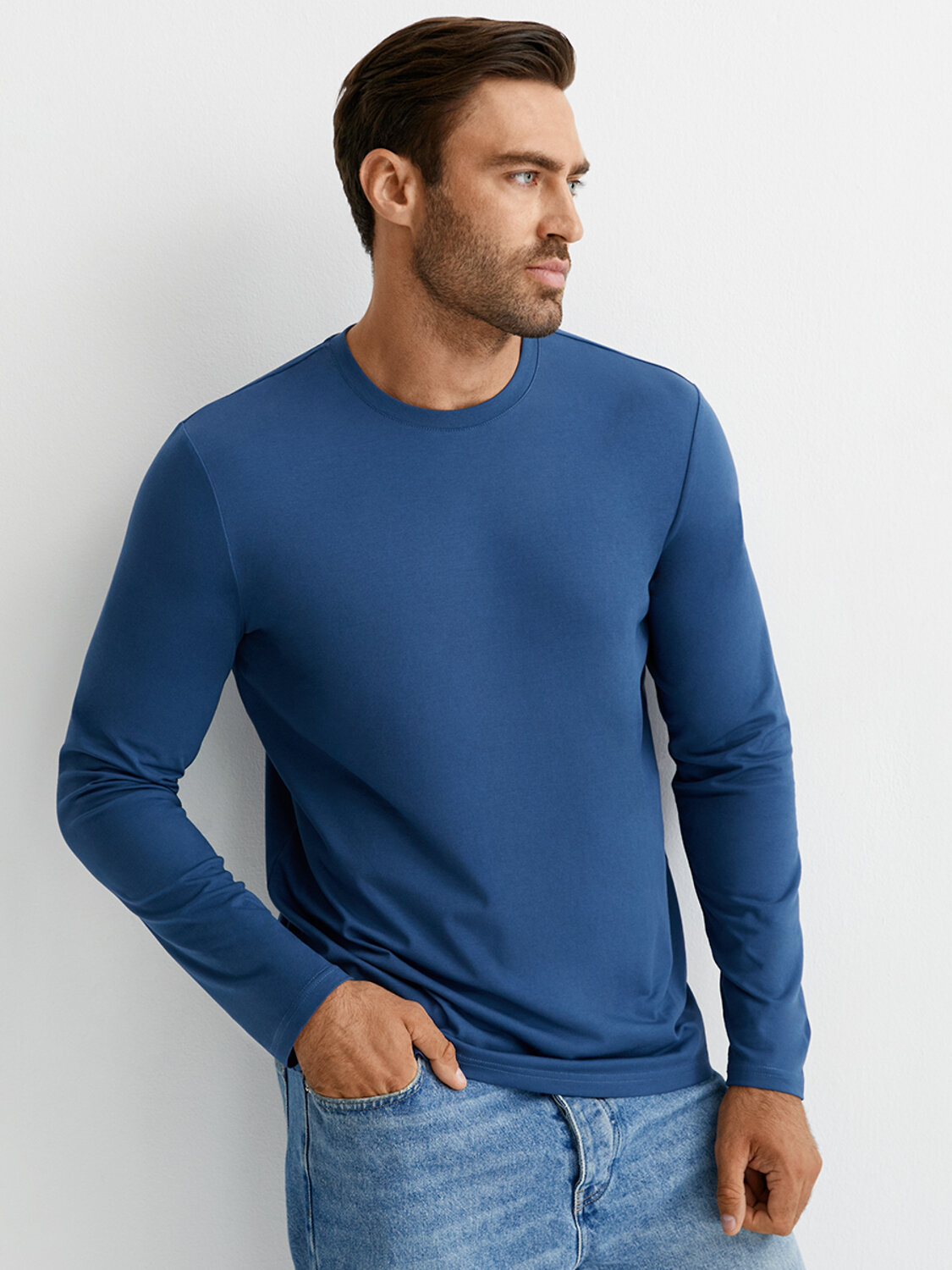 Ст.цена 1100р. Omsa Лонгслив OmT_U 1631 Лонгслив мужской прямого кроя, CO+EL Blu Scuro (Синий) 508085