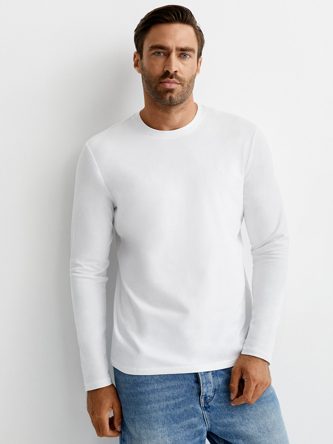 Ст.цена 1100р. Omsa Лонгслив OmT_U 1631 Лонгслив мужской прямого кроя, CO+EL Bianco (Белый) 508084