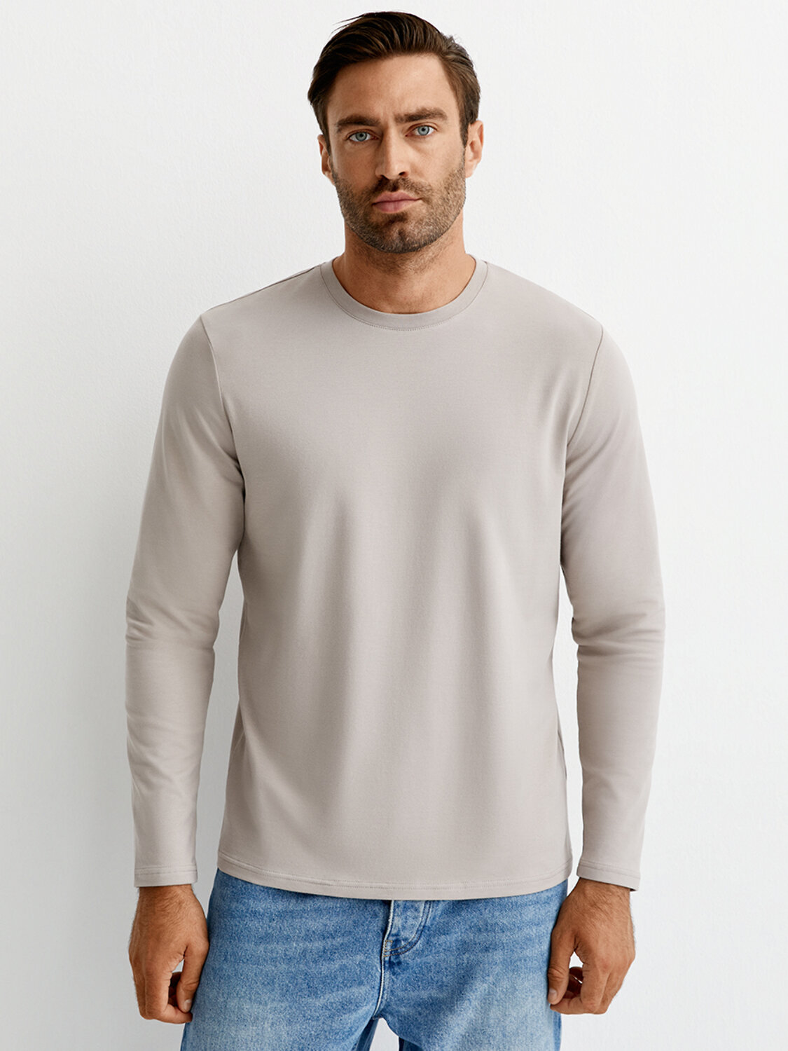 Ст.цена 1100р. Omsa Лонгслив OmT_U 1631 Лонгслив мужской прямого кроя, CO+EL Beige Scuro (Бежевый) 508082
