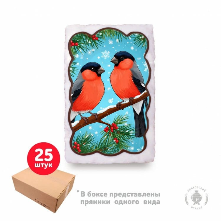 Пряник 130г новогодний "Снегири", (коробка 25шт)
