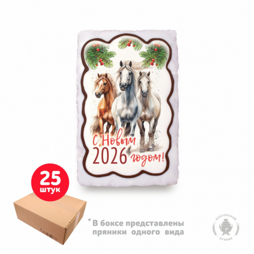 Пряник 130г новогодний "Лошади С Новым Годом 2026!", (коробка 25шт)