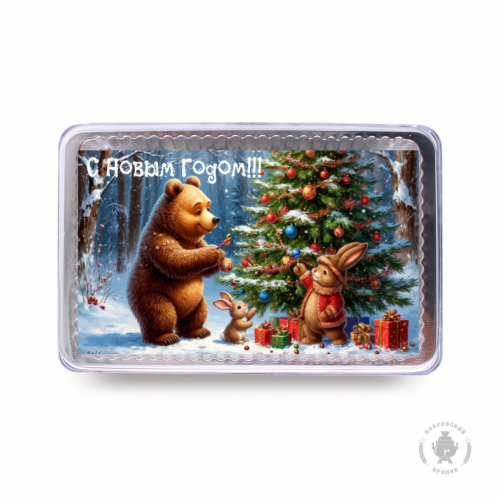 Пряник 140г новогодний с фотопечатью Ёлка с подарками (в подарочной пластиковой упаковке)