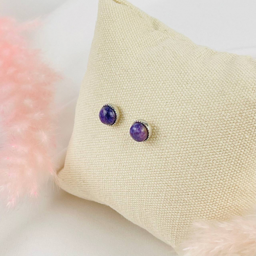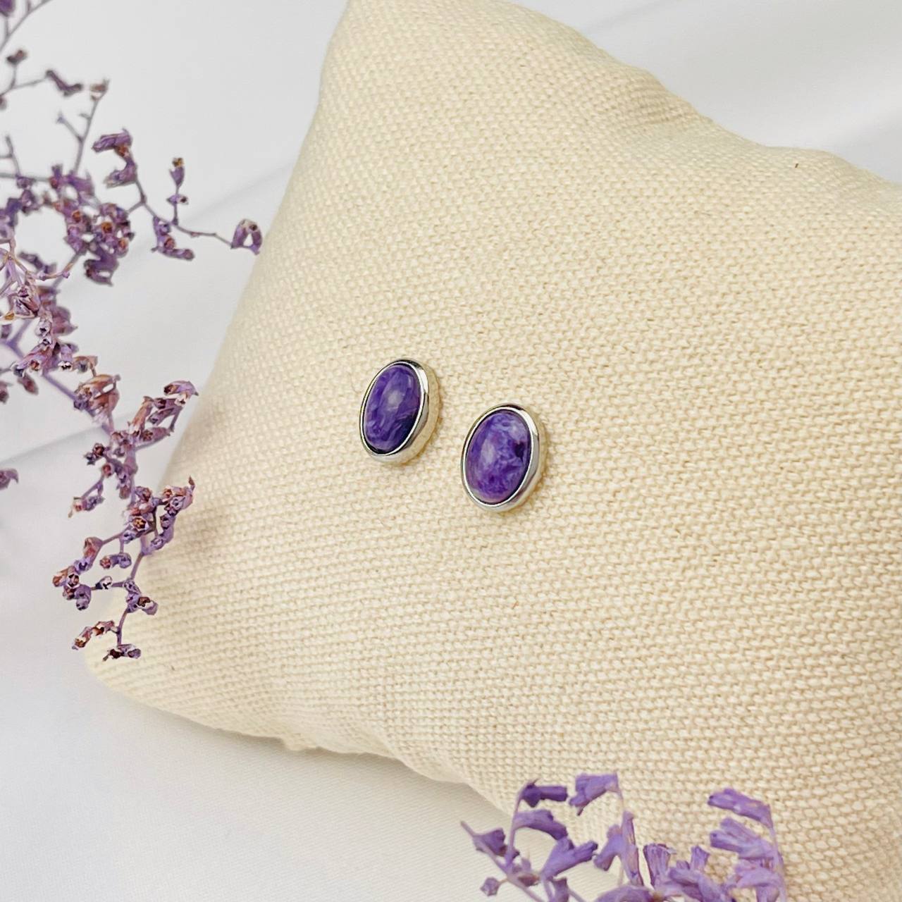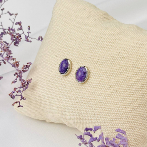 Радуга Самоцветов Серьги-пусеты из Чароита