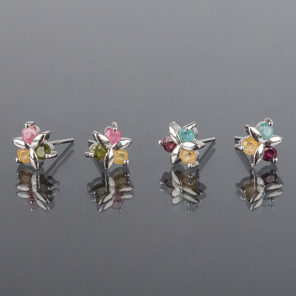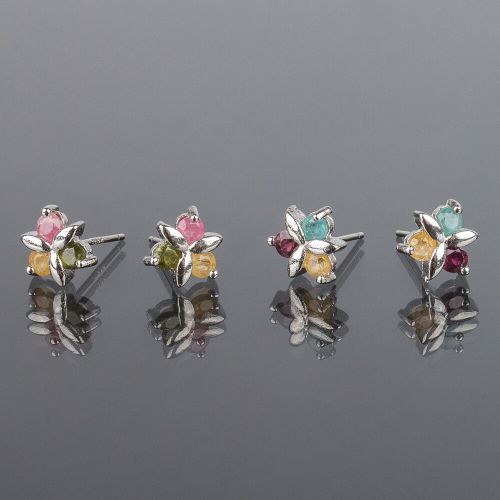 Радуга Самоцветов Серьги-пусеты из Турмалина микс