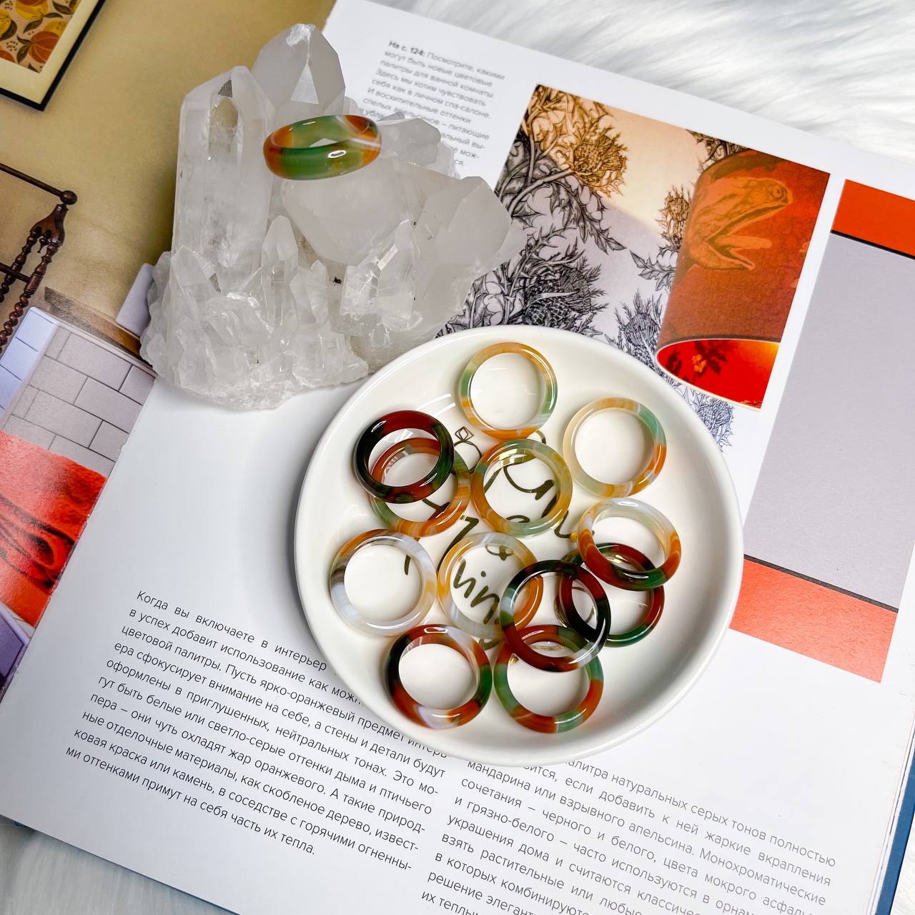 Радуга Самоцветов Кольцо из Агата тон. цельное