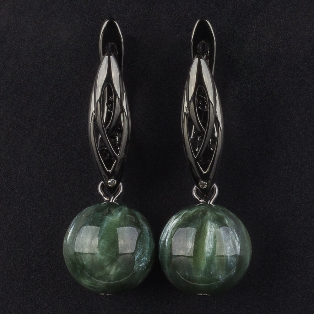 Радуга Самоцветов Серьги из Серафинита "Клинохлора" (Россия)