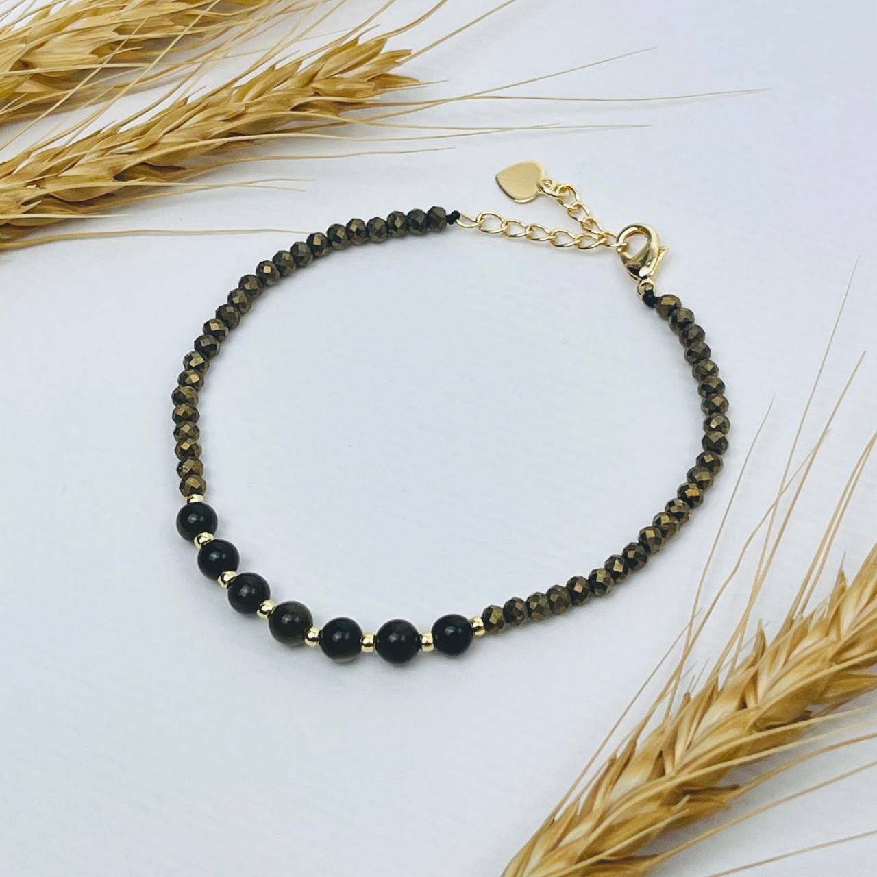 Радуга Самоцветов Браслет из Пирита с золотистым Обсидианом