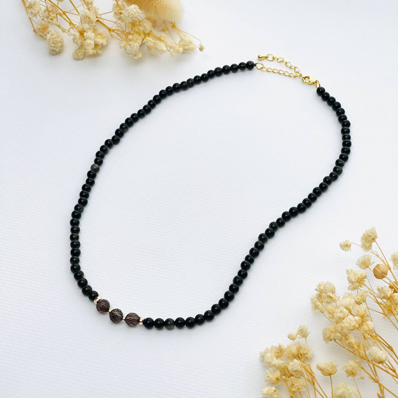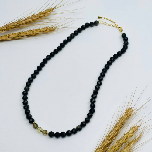 Радуга Самоцветов Бусы из золотистого Обсидиана и Раухтопаза