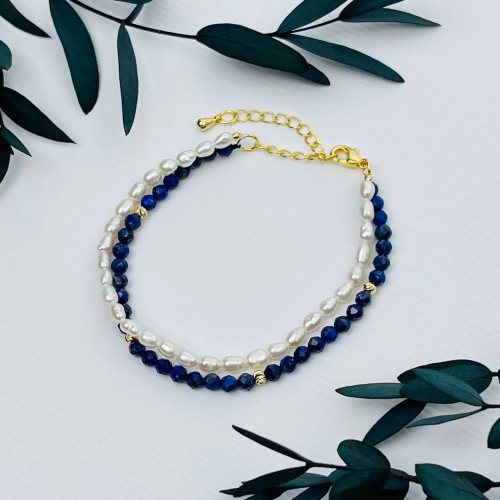 Радуга Самоцветов Браслет двойной из Лазурита и Жемчуга