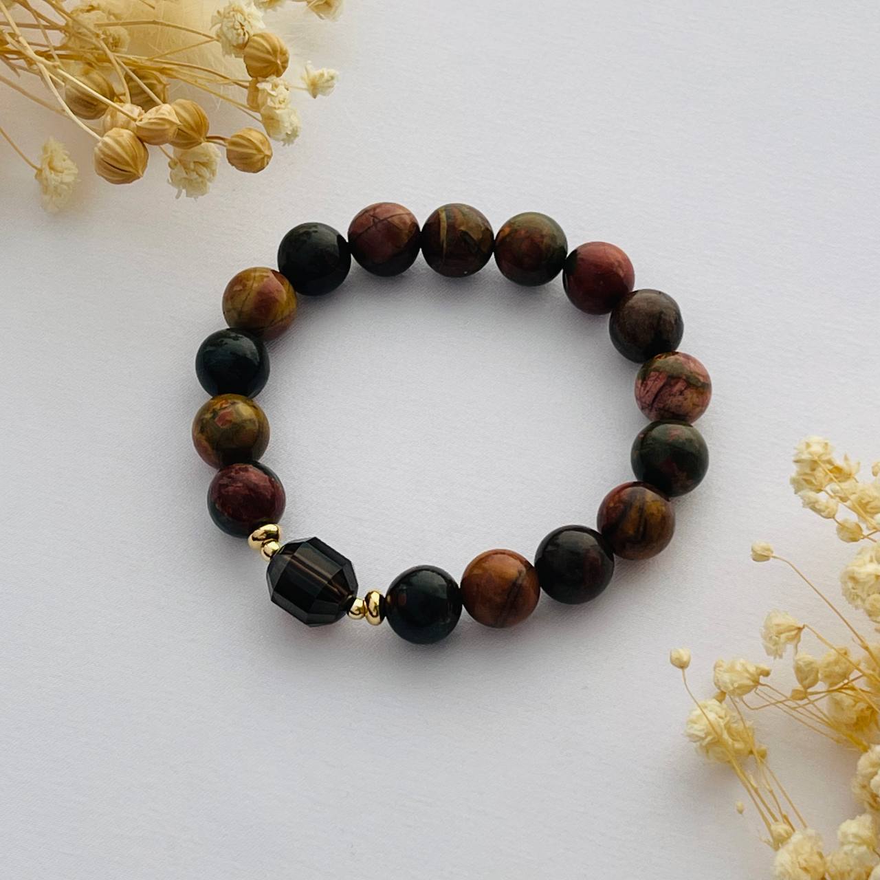 Радуга Самоцветов Браслет из Яшмы "Пикассо" с Раухтопазом