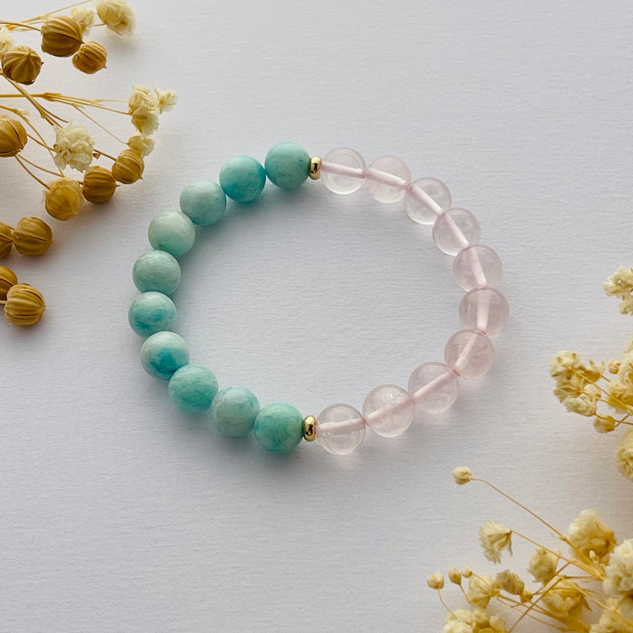 Радуга Самоцветов Браслет из Амазонита и Розового кварца