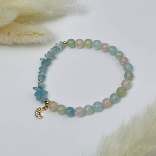 Радуга Самоцветов Браслет из Берилла микс с подвеской "Месяц"