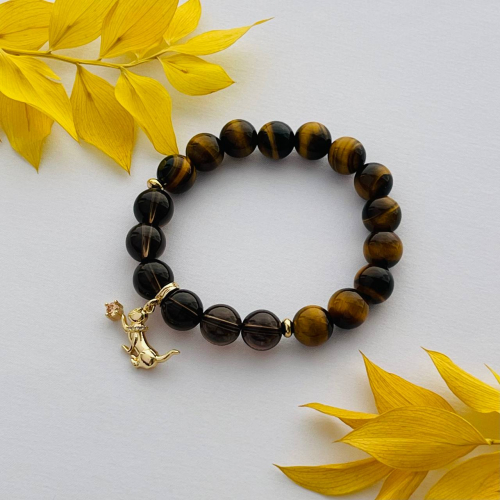 Радуга Самоцветов Браслет из Тигрового глаза и Раухтопаза с подвеской "Кошка"
