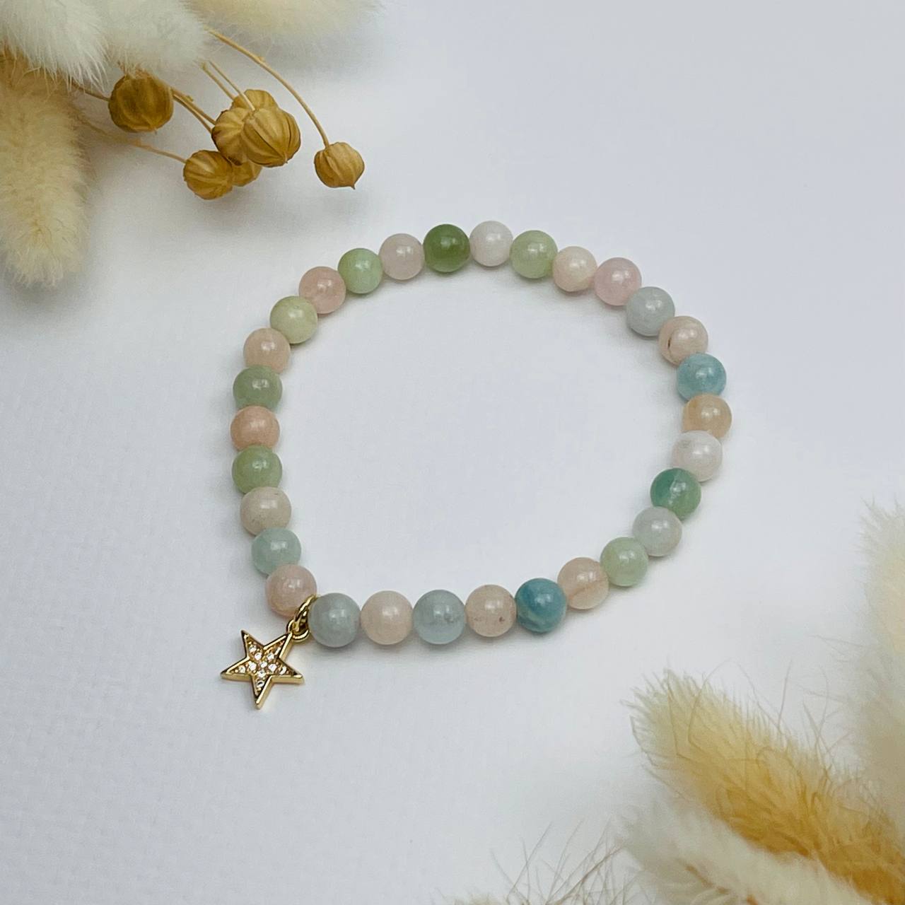Радуга Самоцветов Браслет из Берилла микс с подвеской "Звезда"