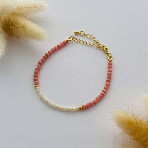 Радуга Самоцветов Браслет из Родохрозита и Жемчуга