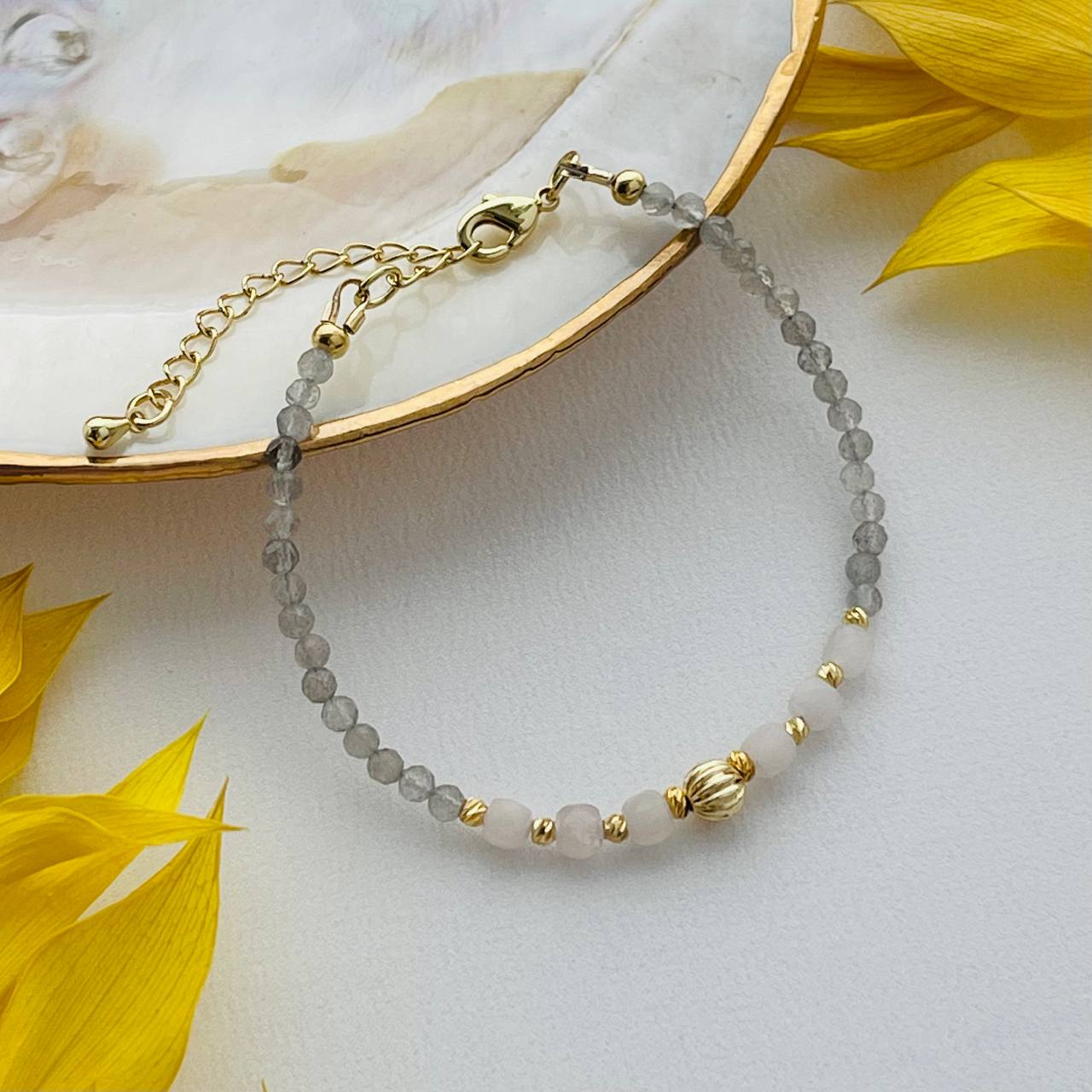 Радуга Самоцветов Браслет из Лабрадора и Розового кварца со вставкой