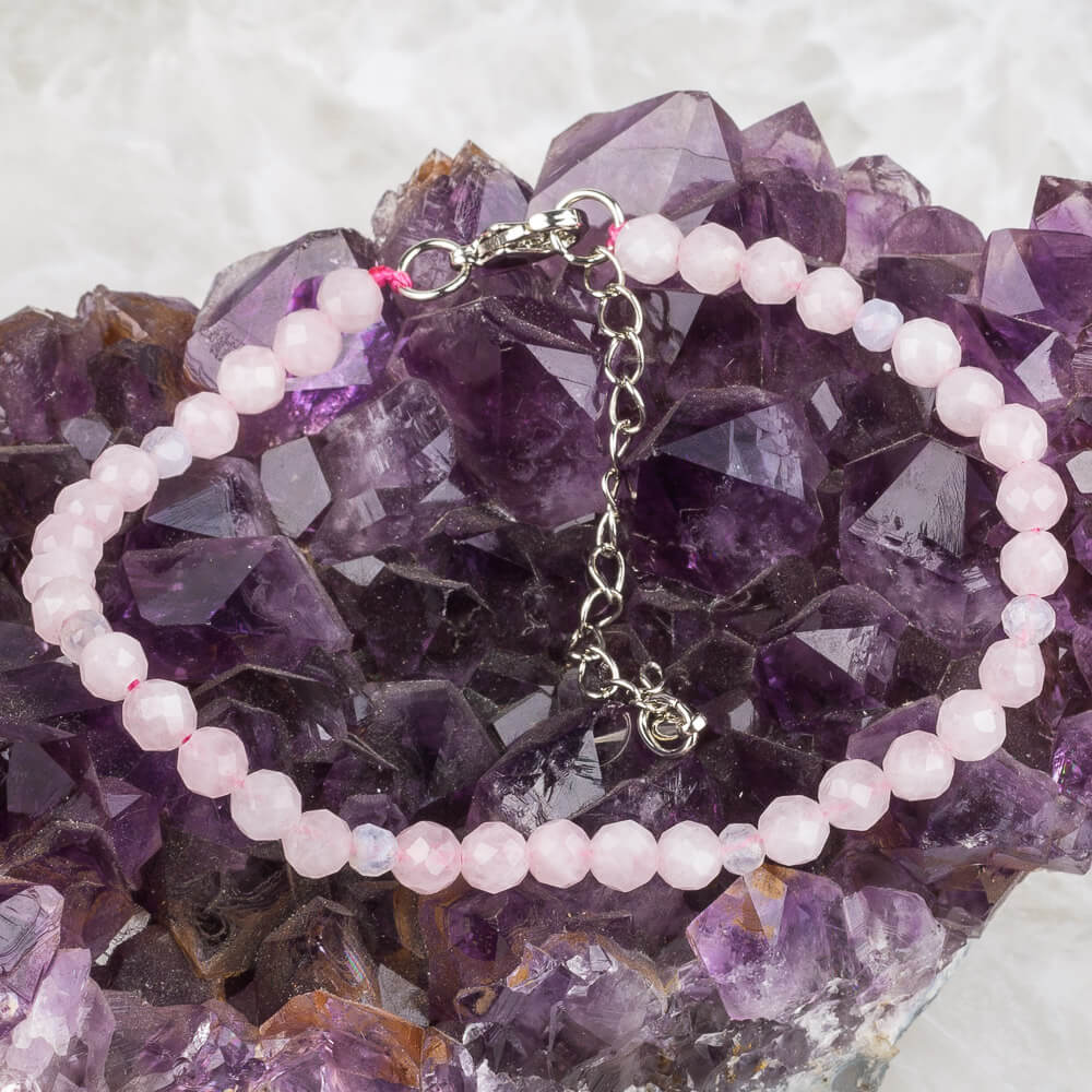 Радуга Самоцветов Браслет из мадагаскарского Розового кварцаи голубого Агата