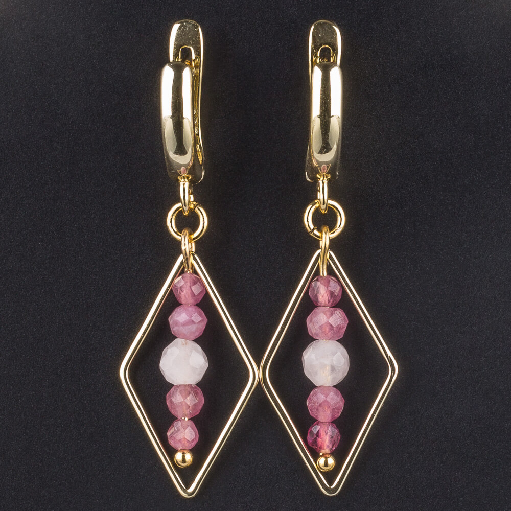 Радуга Самоцветов Серьги из Турмалина и Розового кварца