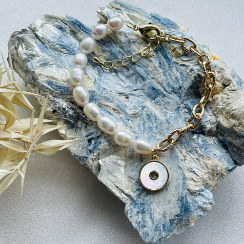 Радуга Самоцветов Браслет из Жемчуга с цепочкой