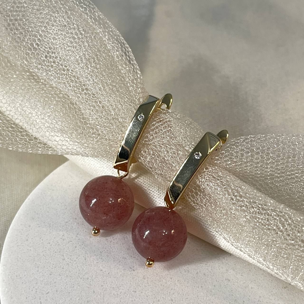Радуга Самоцветов Серьги из Клубничного кварца
