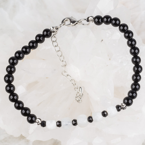 Радуга Самоцветов Браслет из Агата черного, Лунного камня и Шпинели