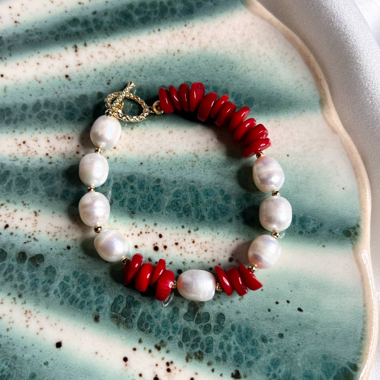 Радуга Самоцветов Браслет из Коралла и Жемчуга