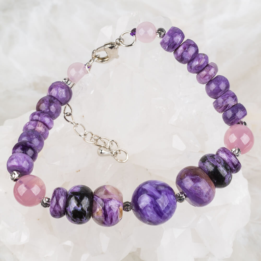 Радуга Самоцветов Браслет из Чароита и мадагаскарского Розового кварца