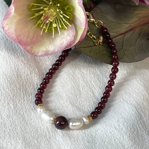 Радуга Самоцветов Браслет из Граната и Жемчуга