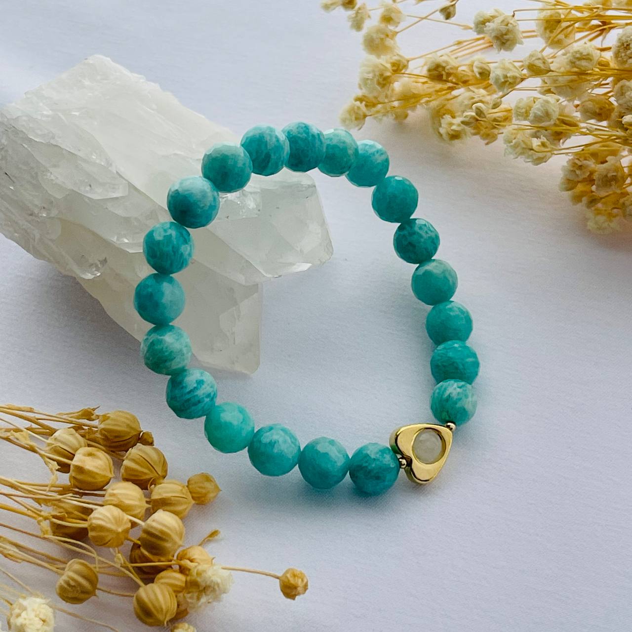 Радуга Самоцветов Браслет из Амазонита и Лунного камня