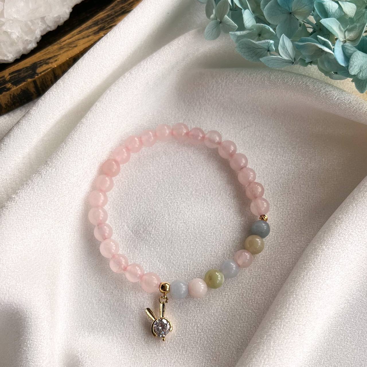 Радуга Самоцветов Браслет с подвеской из Розового кварца, Аквамарина и Берилла