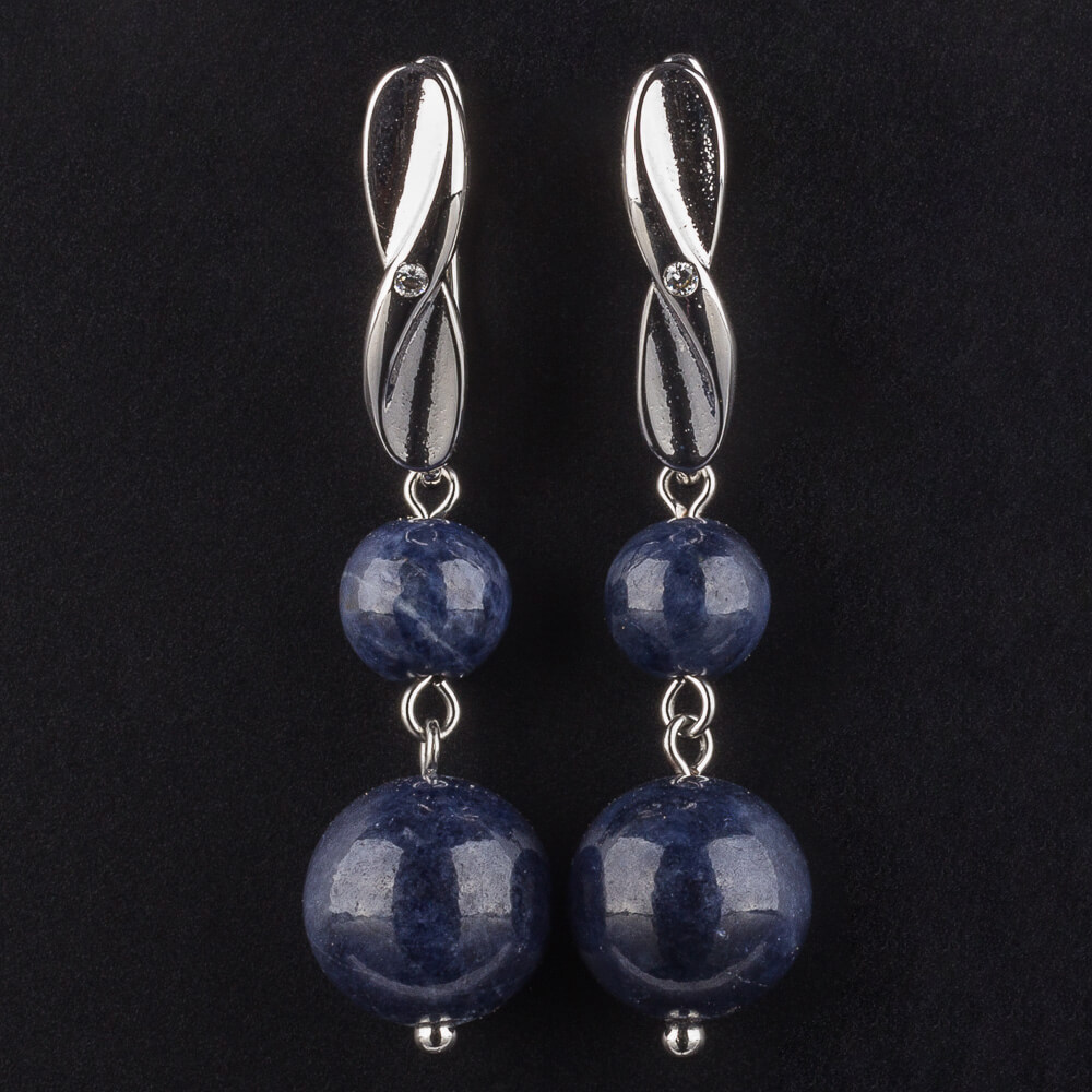 Радуга Самоцветов Серьги двойные из Сапфира "Корунд" (Вьетнам)