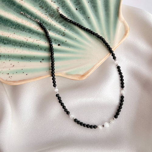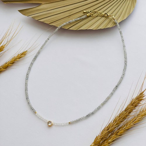 Радуга Самоцветов Бусы из Лабрадора и Лунного камня со вставкой