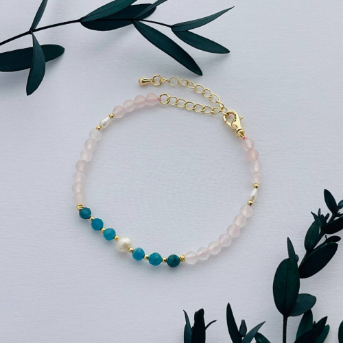 Радуга Самоцветов Браслет из Розового кварца, Апатита и Жемчуга