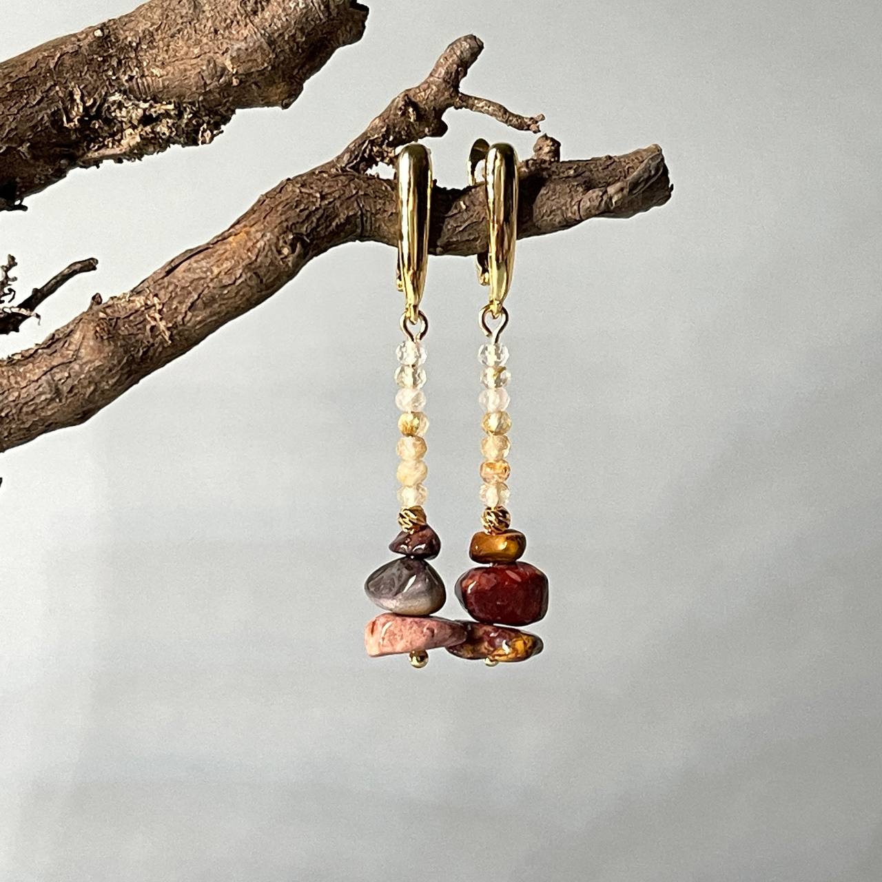 Радуга Самоцветов Серьги из Рутилового кварца и Яшмы "Мукаит"